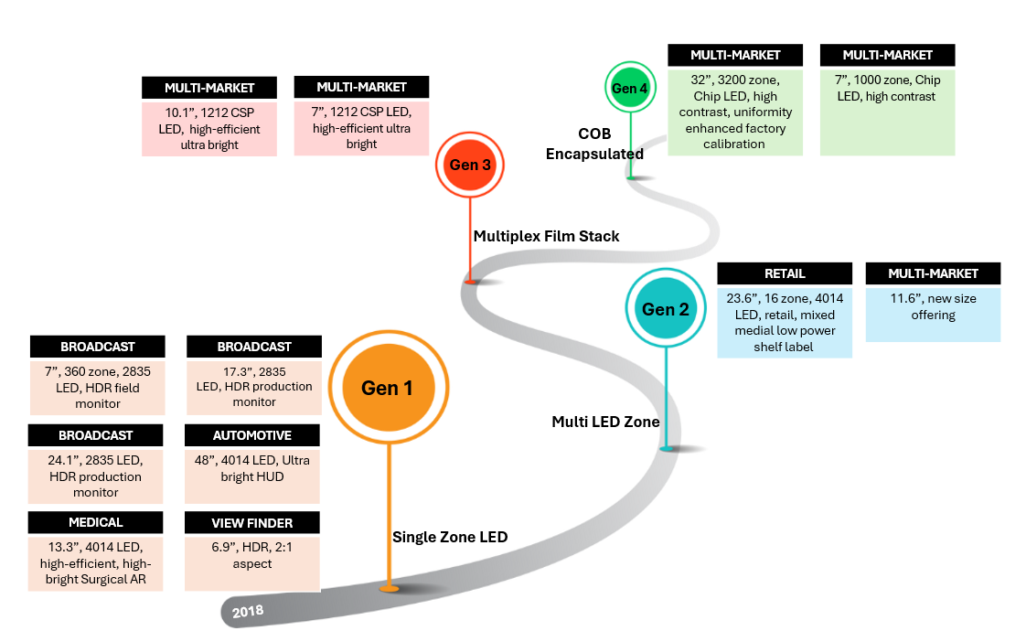 Our Mini-LED journey has been driven by our customers’ bold vision and demanding requirements. Each time they pushed the limits of their applications, we stood as a trusted pillar, delivering display innovations that made those ambitions possible. That customer-driven innovation journey has led us through generational advancements, enabling true HDR, cost savings, thinner modules, and greater power efficiency. Let’s dive in.